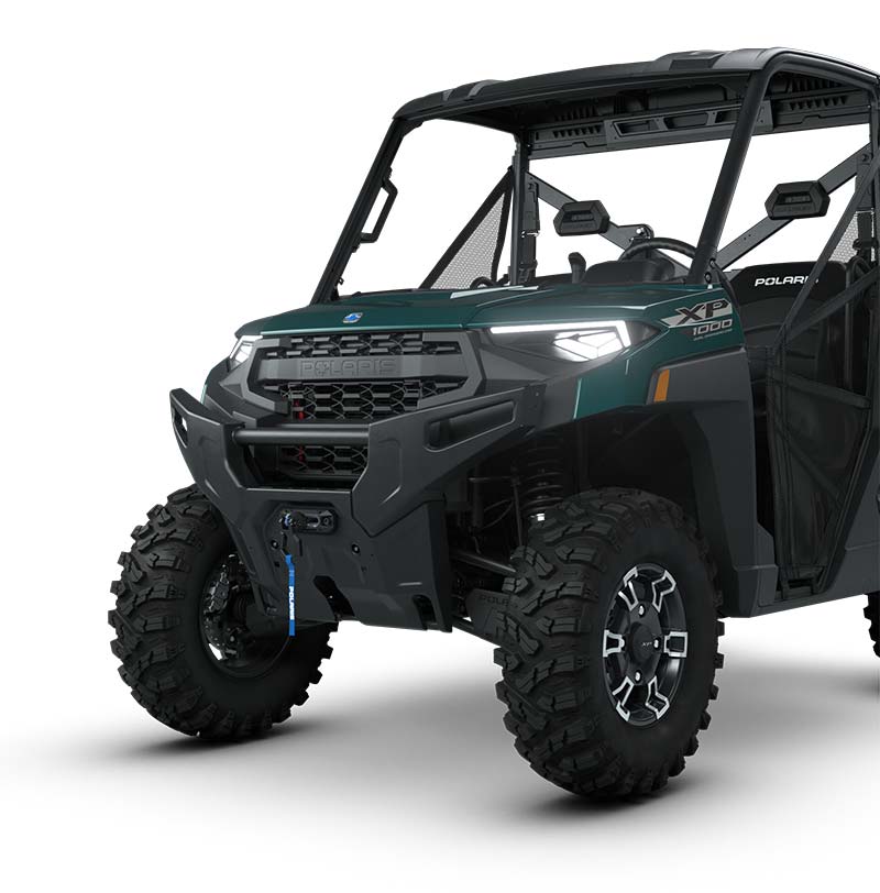 660-W charging system, Polaris Pulse electrical system (3-position), 12V accessory outlet, battery trickle-charging port, 2,040 kg Winch with synthetic rope, Auto Stop and wireless remote, Large steel bumper, full-coverage skid plate, A-arm guards, Cab nets